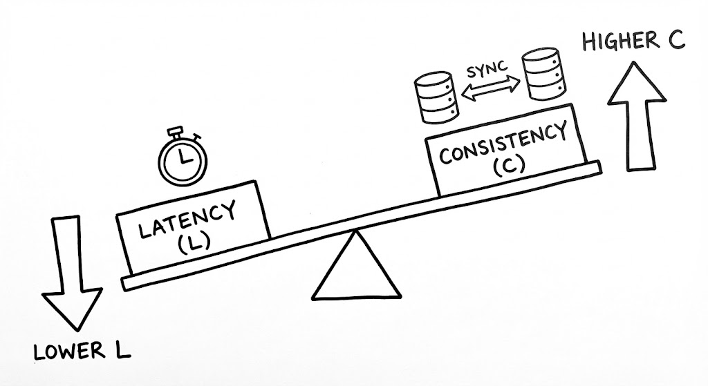 네트워크가 정상적일 때(Else), 우리는 CAP의 제약에서 벗어나 자유로울 것이라 착각하기 쉽습니다. 하지만 물리적 거리는 여전히 존재하며, 빛의 속도는 여전히 유한합니다. 모든 데이터 복제본이 최신 상태를 유지하도록 보장하려면(Consistency), 모든 노드의 확인 응답을 기다려야 합니다. 이는 필연적으로 응답 속도의 저하, 즉 지연 시간(Latency)의 증가를 초래합니다.
