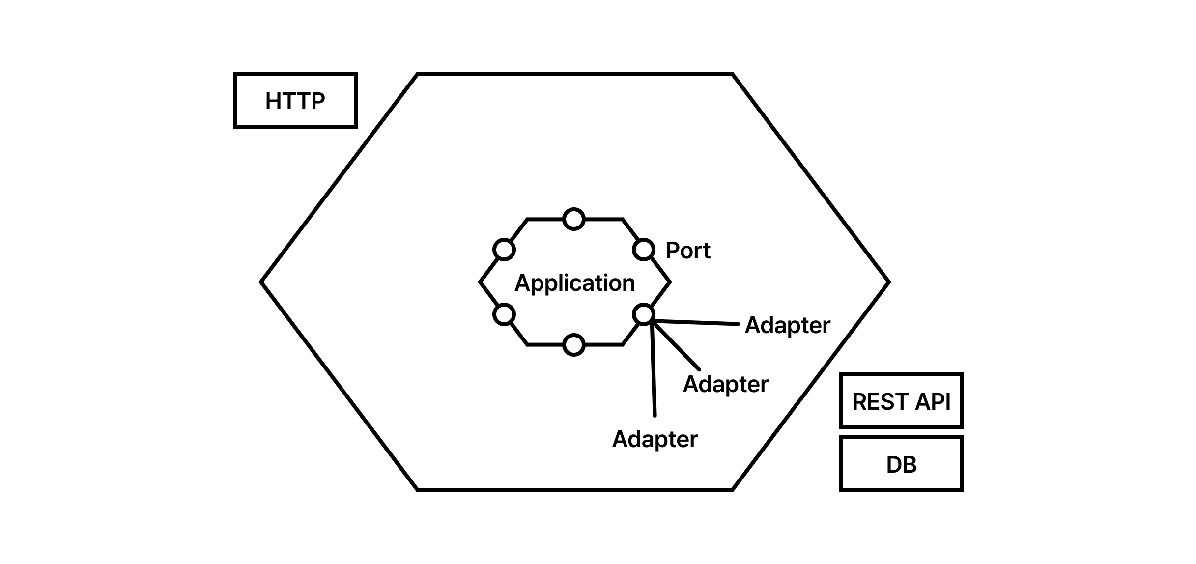 콕번은 “육각형”이라는 모양 자체에는 큰 의미가 없다고 말합니다. 단지 애플리케이션이 4면(Top-Down)뿐만 아니라 여러 면(Port)을 통해 외부와 소통할 수 있음을 시각적으로 보여주기 위한 메타포일 뿐입니다.