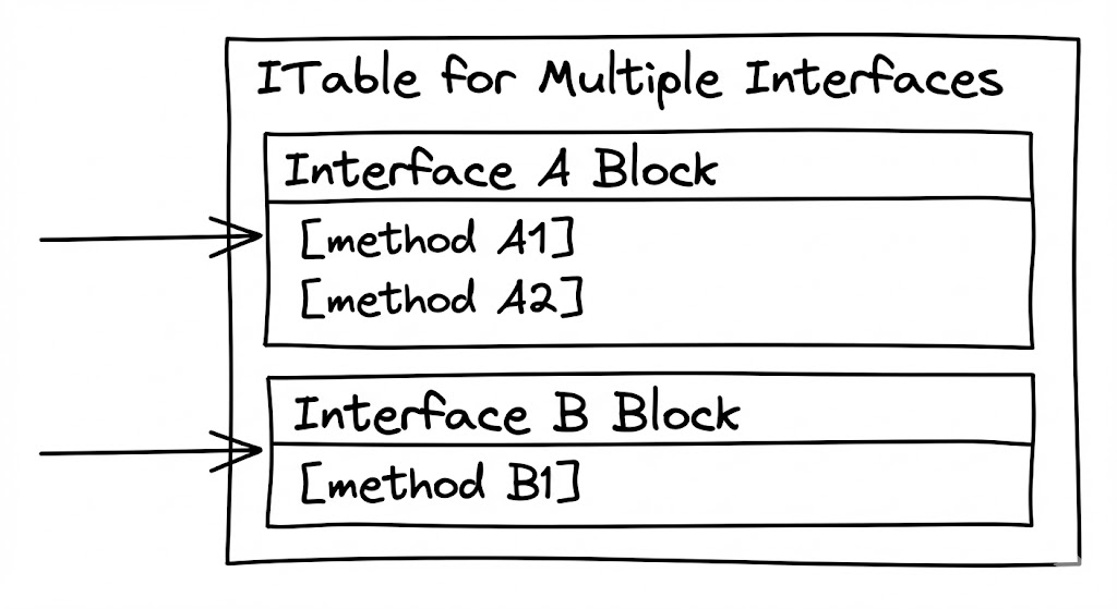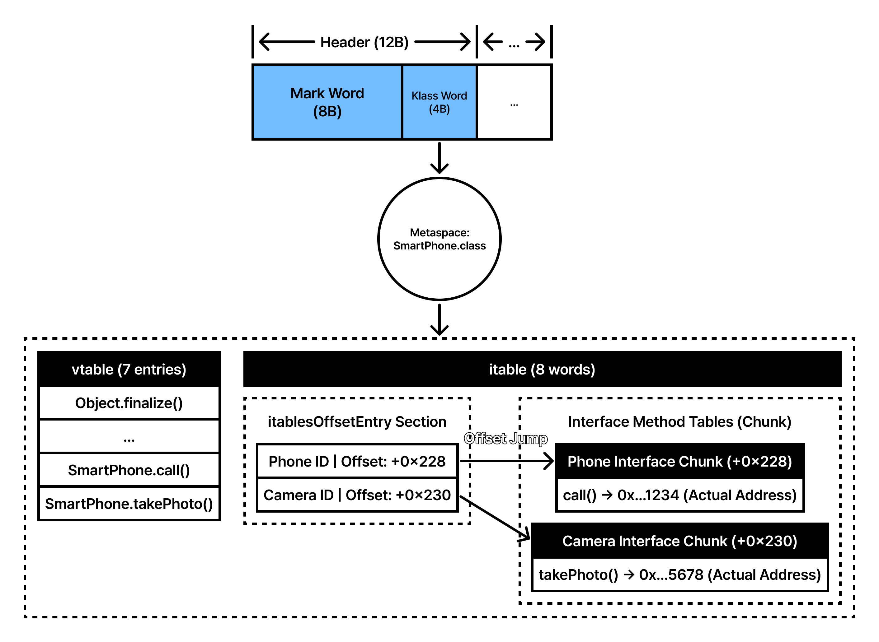 추상 클래스는 VTable을 통해 메서드 위치를 고정할 수 있지만, 인터페이스는 앞서 보았듯 ITable을 통한 동적 탐색이 필요합니다. 따라서 성능 민감도가 극도로 높은 프레임워크 설계 시, 다중 구현이 필요 없는 상황이라면 인터페이스보다 추상 클래스를 사용하는 것이 VTable의 고정 인덱스 접근(Direct Access) 덕분에 미세하게 더 유리합니다.
