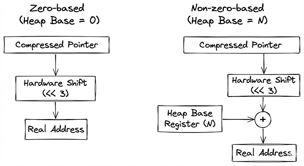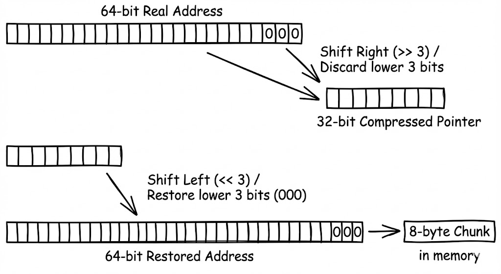 JVM은 이 포인터를 통해 런타임에 객체의 타입을 확인하고, 가상 메서드 테이블(VTable)에 접근하여 다형성을 구현합니다. 여기서 주목할 점은 Compressed OOPs 기술입니다. 64비트 환경에서 포인터는 원래 8바이트여야 하지만, JVM은 32GB 이하의 힙 메모리 환경에서 이 포인터를 4바이트로 압축하여 저장합니다. 이를 통해 헤더 크기를 16바이트에서 12바이트로 줄여 메모리 효율을 극대화합니다.