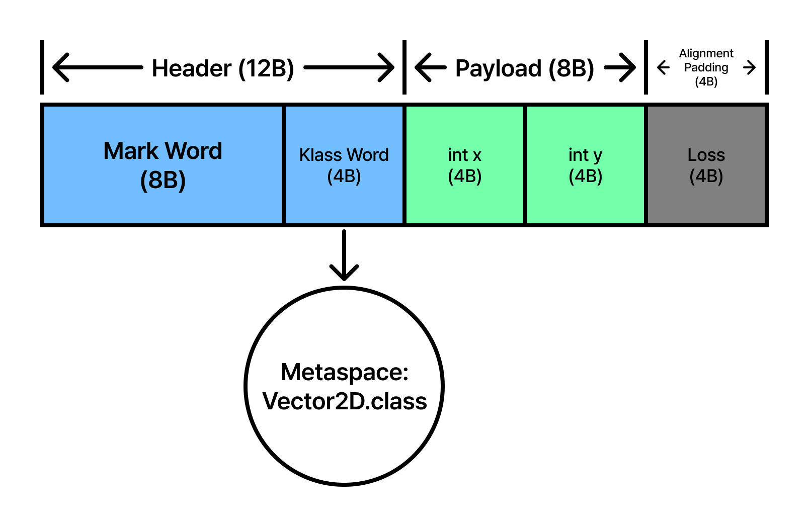 JVM은 이를 방지하기 위해 필드 선언 순서를 무시하고 ‘크기 순 재배치’ 전략을 취합니다. 일반적으로 long/double -> int/float -> short/char -> byte/boolean -> references 순으로 모아서 배치함으로써, 필드 사이사이에 끼어드는 패딩을 최소화하는 ‘바이너리 테트리스’를 수행합니다.