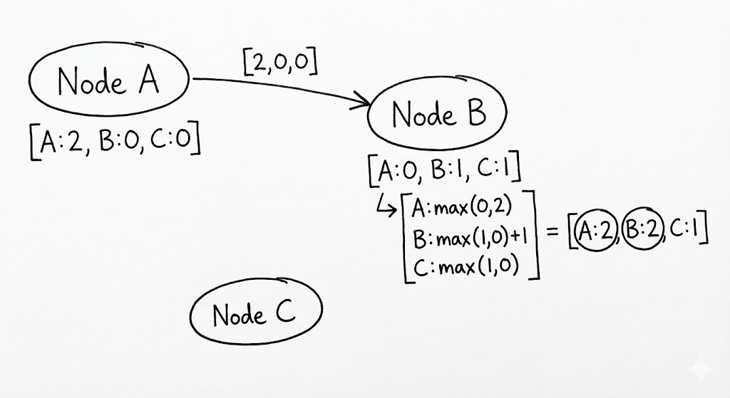 - 계승(Succession): 한 벡터가 다른 벡터보다 크다면, 이는 단순히 최신화된 상태입니다. 이전 데이터는 안전하게 버려집니다.