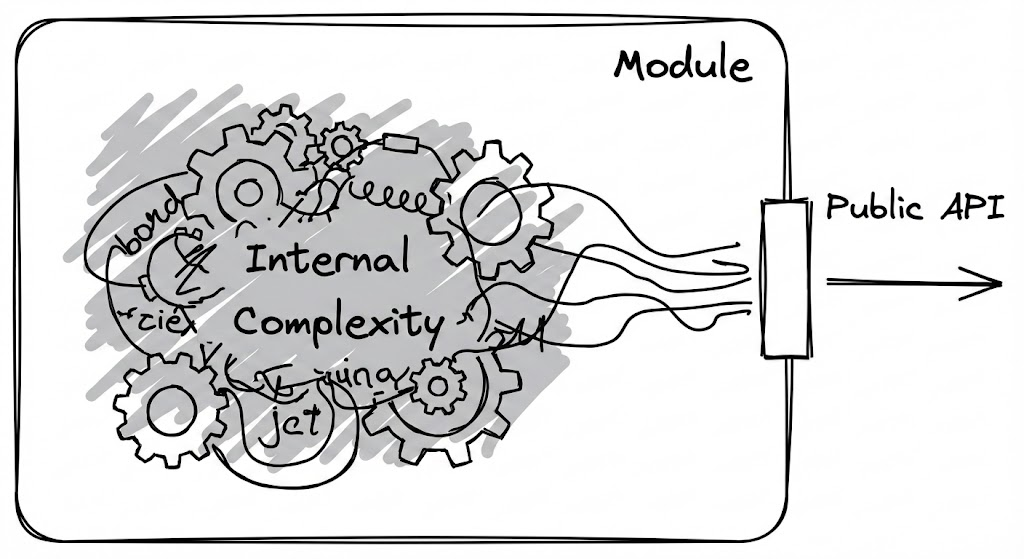 ์ฐ๋ฆฌ๋ ๋ชจ๋ ๋ด๋ถ๋ฅผ โBlack Boxโ๋ก ์ ์งํด์ผ ํฉ๋๋ค. ์ธ๋ถ์์๋ ๋ชจ๋์ด ์ด๋ค ๋ฐ์ดํฐ๋ฒ ์ด์ค ๋ผ์ด๋ธ๋ฌ๋ฆฌ๋ฅผ ์ฐ๋์ง, ์ด๋ค ๋ณต์กํ ์๊ณ ๋ฆฌ์ฆ์ผ๋ก ๊ฒฐ๊ณผ๊ฐ์ ๋์ถํ๋์ง ์ ํ์๊ฐ ์์ต๋๋ค. ์ค์ง ์ฝ์๋ ์ธํฐํ์ด์ค๋ฅผ ํตํด์๋ง ์ํธ์์ฉํด์ผ ํฉ๋๋ค. ์ด๋ฌํ ์๊ฒฉํ ์บก์ํ๋ ๊ฐ๋ฐ์๊ฐ ๋ชจ๋ ๋ด๋ถ ์ฝ๋๋ฅผ ๋ฆฌํฉํ ๋งํ ๋ โ์ธ๋ถ์ ๋ฏธ์น ์ํฅโ์ ๊ณ ๋ฏผํ์ง ์๊ฒ ํจ์ผ๋ก์จ ๊ฐ๋ฐ ์๋๋ฅผ ๋น์ฝ์ ์ผ๋ก ํฅ์์ํต๋๋ค.