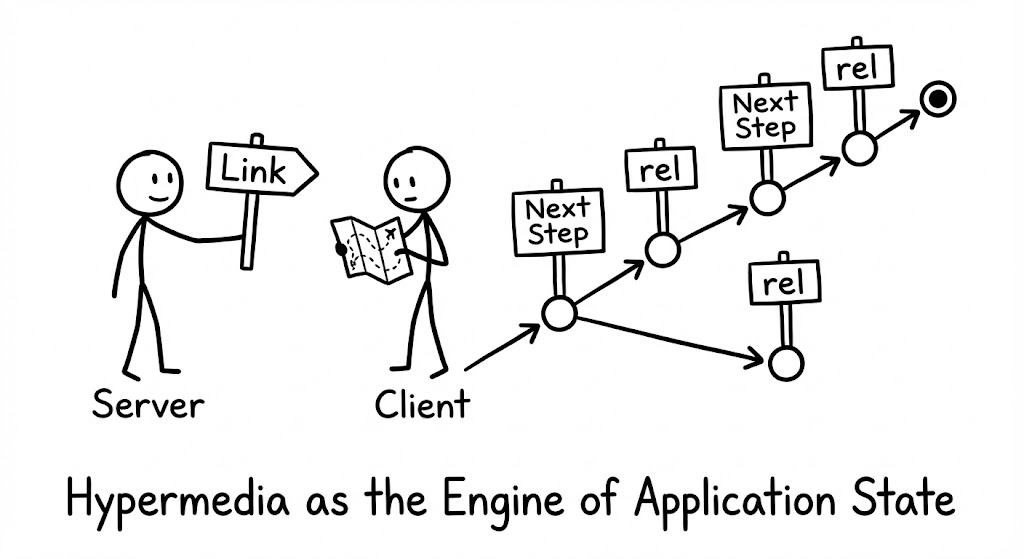 이것은 혁명적인 변화입니다. 클라이언트는 더 이상 특정 비즈니스 흐름을 위해 어떤 URL로 요청을 보내야 할지 미리 알 필요가 없습니다. 마치 웹 브라우저에서 하이퍼링크를 타고 다음 페이지로 이동하듯, API가 제공하는 링크를 따라가기만 하면 됩니다. 이는 서버가 인터페이스나 경로를 변경하더라도 클라이언트 코드를 수정할 필요가 없게 만드는 ‘궁극의 디커플링’을 약속합니다. 하지만 이 약속에는 만만치 않은 대가가 따릅니다.