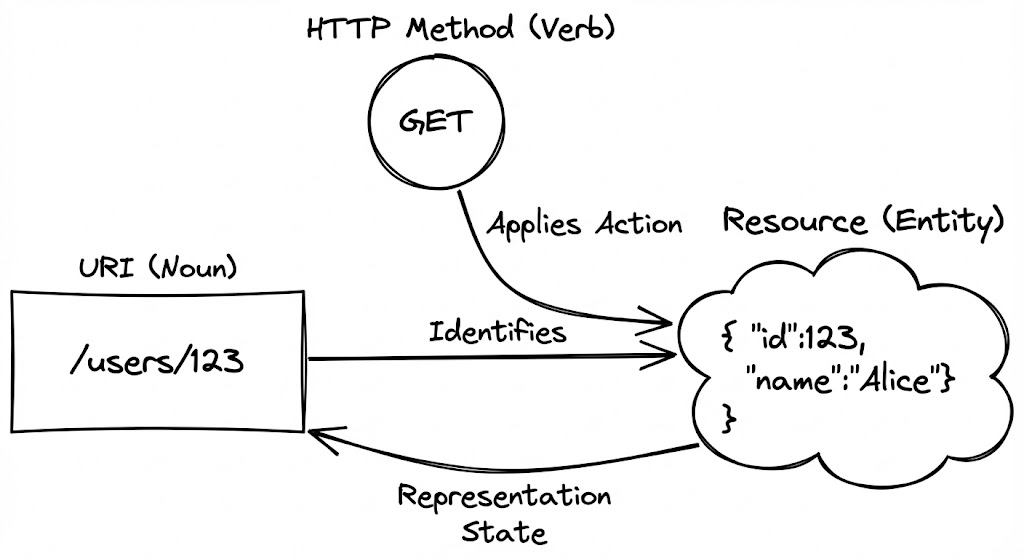 REST 설계에서 가장 흔하게 저지르는 실수는 URL에 동사를 포함하는 것입니다. 하지만 REST의 본질은 ‘동작’이 아니라 ‘상태’에 있습니다. 모든 것은 리소스(Resource)로 표현되어야 하며, URL은 그 리소스를 가리키는 고유한 식별자(ID) 역할을 수행합니다.