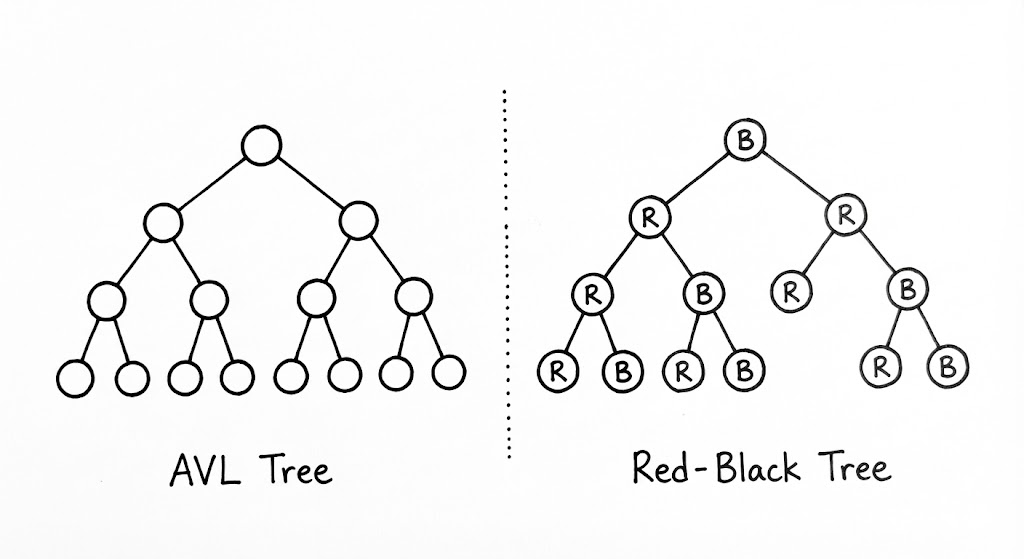 하지만 이 오버헤드는 ‘지능’을 위한 정당한 대가입니다. 심화된 트리 구조로 나아갈수록 노드는 자신의 상태를 기록하기 위한 메타데이터를 품기 시작합니다. AVL 트리에서는 서브트리의 높이(Height)를, Red-Black 트리에서는 노드의 색상(Color) 정보를 관리합니다. 이 작은 데이터들이 모여 전체 트리의 균형을 실시간으로 감시하는 ‘센서’ 역할을 수행합니다. 숙련된 엔지니어는 이 메타데이터를 포인터의 남는 하위 비트에 숨기거나(Pointer Tagging), 구조체 필드 배치를 최적화하여 64바이트 캐시 라인(Cache Line) 하나에 최대한 많은 정보를 우겨넣는 설계를 고민해야 합니다.